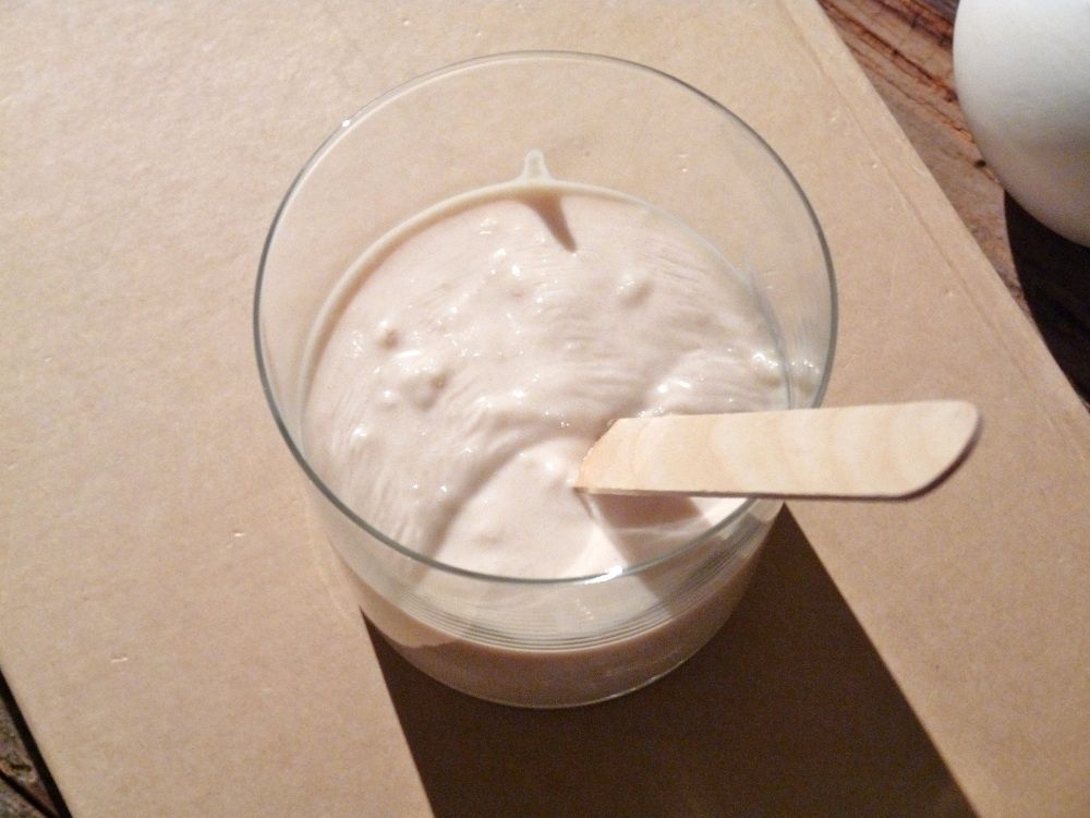 –Quand la préparation est bien mélanger, ajouter la cuillère à soupe d’huile et mélanger vivement jusqu’à ce que